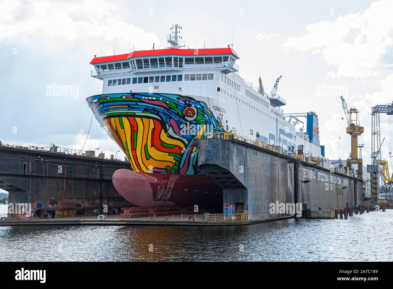 Szczecin Werft Stocznia Szczecinska Gryfia Polen 08 28 2017 Ostseefahre Cracovia Im Werfttrockendock Redaktionelles Bild Bild Von Europa Anklagebank 171157860