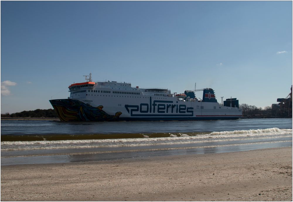 Die Polferries Fahre Cracovia Auf Dem Seeweg Von Swinoujscie Nach Ystad Beim Auslaufen Am 23 10 2017 In Swinoujscie Schiffbilder De