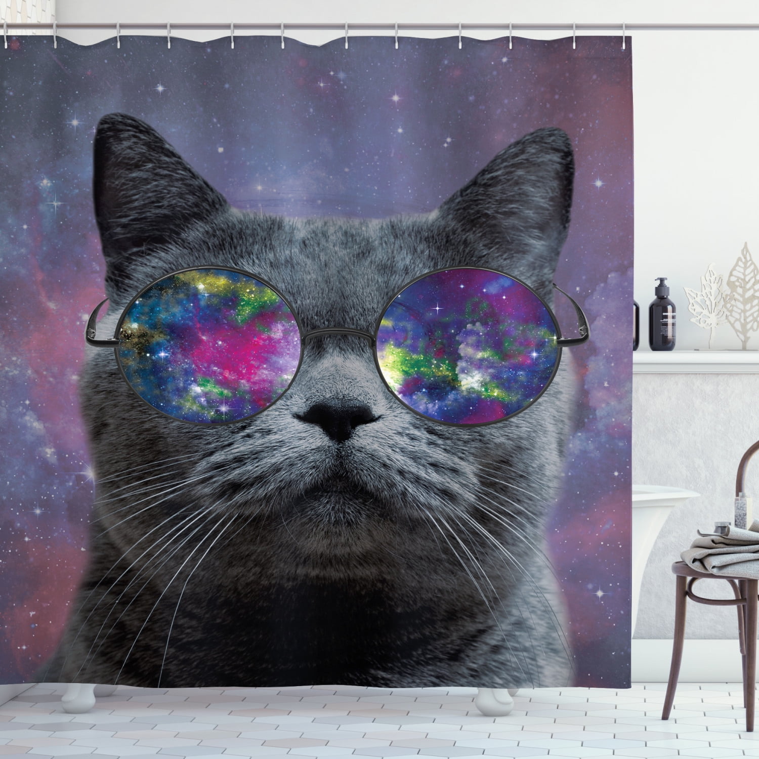 Cat Decorations Galaxy Scottish Fold With Hipster Glasses Art Fun Shower Curtain Walmart Com
